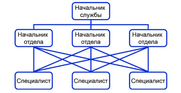 Тогда структура принимает такой вид: каждый специалист нижнего уровня подчиняется руководителю вышестоящего уровня. Но только в разовых задачах, которые не требуют большого количества ресурсов.